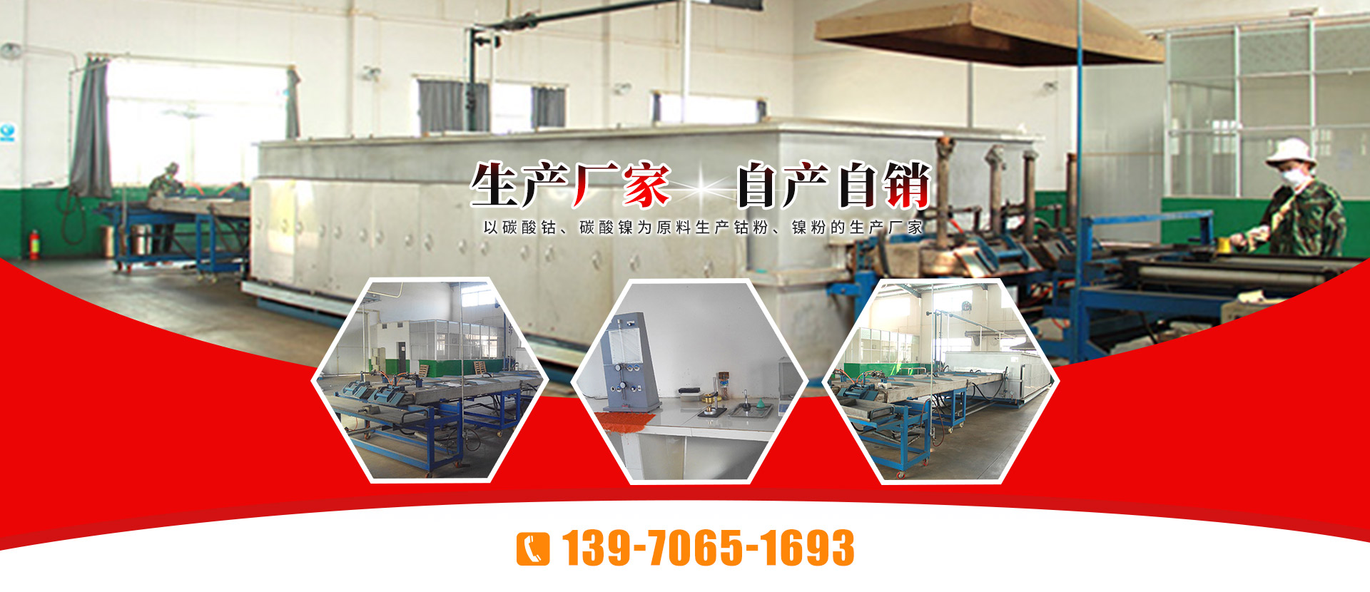 公司成立于2008年5月,注冊資金500萬元。是以碳酸鈷、碳酸鎳為原料生產鈷粉、鎳粉的專業(yè)生產廠家,目前主要產品有各粒級鈷粉、鎳粉,鈷粉粒級從Fsss:0.8μm~4.0μm,鎳粉從0.7μm~4.0μm 各粒級產品,目前公司有500噸鈷粉、500噸鎳粉生產線。公司鈷粉、鎳粉產品經機構檢測,產品擁有較高水平,且超細顆粒鈷粉(費氏粒度小于0.8μ...